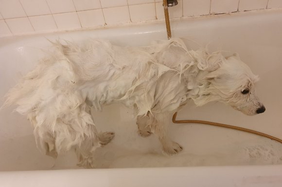 Si le chien est vraiment très sale un deuxième shampoing est nécessaire.