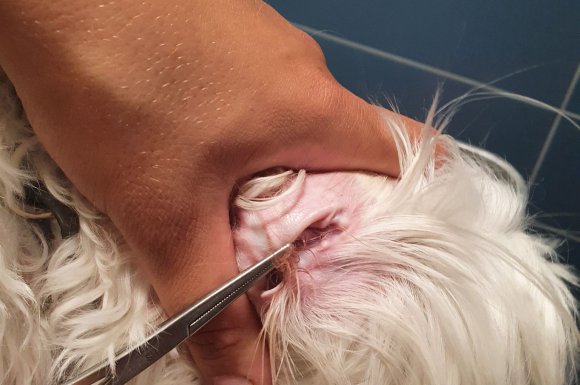 Il est important d’enlever les poils a l’intérieur des oreilles sur certaines races pour éviter l’apparition des bactéries qui pourront empirer en otites. Cela permet une facilité pour nettoyer l’intérieur des oreilles avec du cotons puis du lait ou nettoyant oriculaire adapté à votre animal, pour avoir un nettoyage quotidien chez vous. Vous trouverez ceci soit en animalerie soit auprès de votre toiletteuse sur commande.