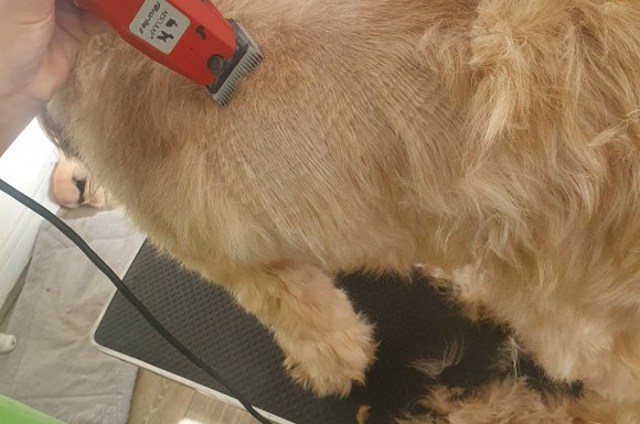 Pour les chiens sensibles du feu du rasoir nous le faisons aux ciseaux, cela laisse une petite longueur adaptée, mais attention à la repousse du poil, elle sera beaucoup plus rapide. Prévoyez donc un toilettage régulier tous les deux-trois mois.
